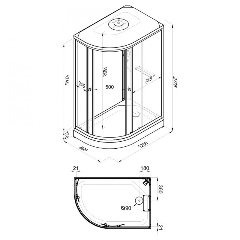 ДК Коралл-Мозайка 120*80 А прав., низ. подд. (6 мест+сифон D90) TRITON