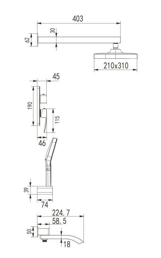 Душевая ситема встроенная 3 в 1, белый с хром R1535F "ROSE" ROSE (SHEWANIK)