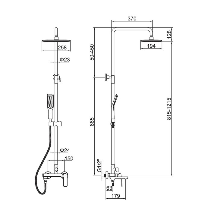 Верхний душ: прямоугольный.