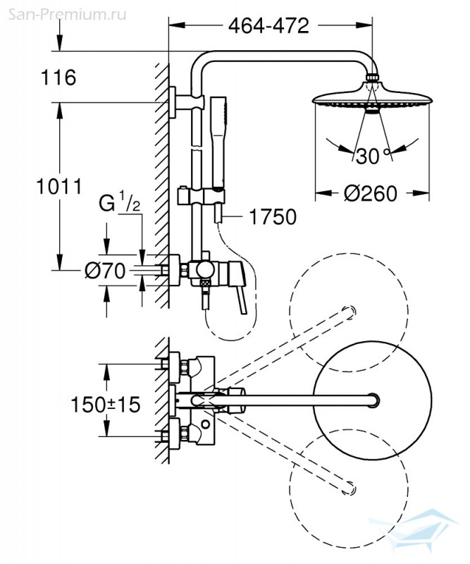 EUPHORIA CONCETTO SYSTEM 260 ДУШЕВАЯ СИСТЕМА С ОДНОРЫЧАЖНЫМ СМЕСИТЕЛЕМ НАСТЕННОГО МОНТАЖА GROHE