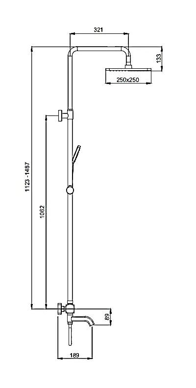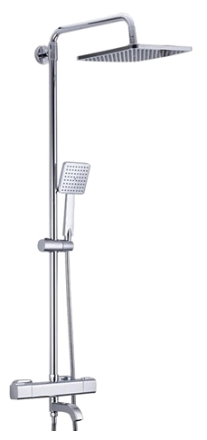 Термостатический смеситель; Душевая стойка; Верхний душ; Держатель лейки; Душевая лейка; Душевой шланг; Крепления