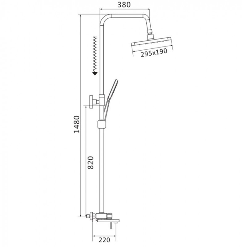 Душевая стойка Shevanik S8236 - модель с поворотным изливом, тропической верхней лейкой и ручным душем, цвет "хром". Верхний душ на шарнире, который позволяет регулировать наклон лейки, регулируется по высоте. Плоский корпус смесителя можно использовать в качестве полочки для душевых принадлежностей.