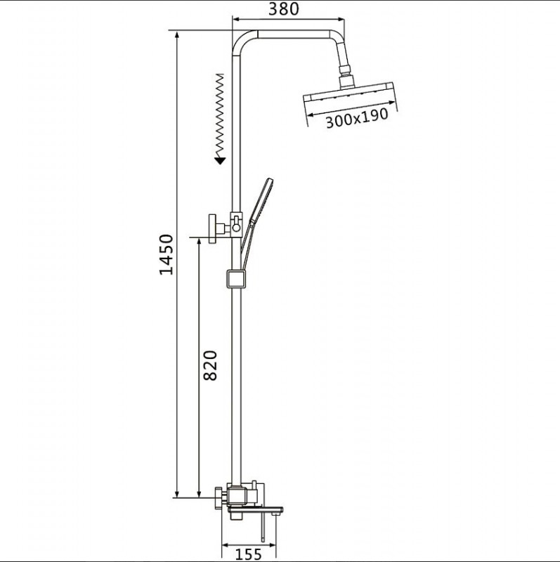Душевая стойка Shevanik S8536T - модель с поворотным изливом, тропической верхней лейкой и ручным душем, цвет "оружейная сталь". Верхний душ на шарнире, который позволяет регулировать наклон лейки. Душевой гарнитур с трехрежимной лейкой крепится на подвижном держателе. Переключение на душевой режим поворотом излива. Стойка регулируется по высоте.
