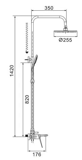 Душевая система Shevanik S8436, хром. Количество режимов струи: 3. Размер верхнего душа: 25,5x25,5 см. Управление: рычажное. Излив для наполнения ванны: да.
