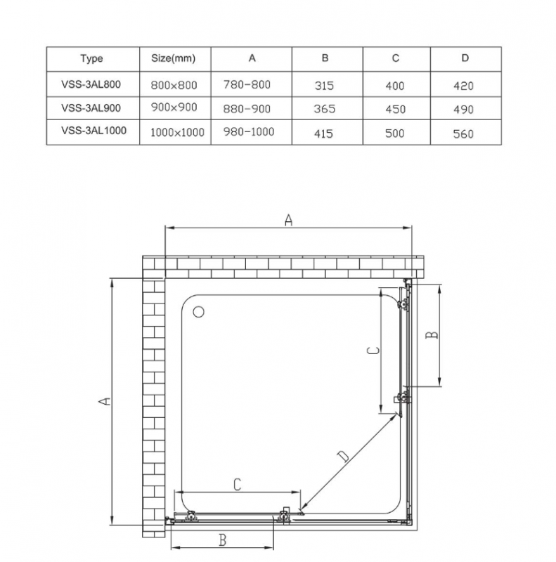 Душевой уголок Alpha 3AL800MT, 800*800, VSS-3AL800MT хром, текстурн Vincea (299253) Vincea