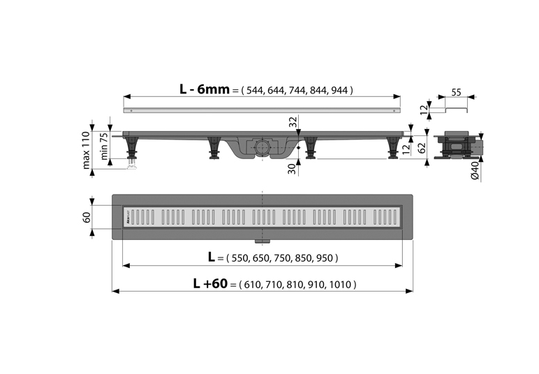 Водоотвод.желоб APZ-10 (750мм) APZ10-750M Alcadrain