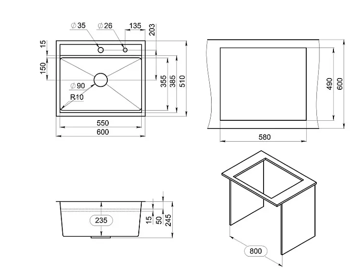 Мойка кухонная ЧЕРНЫЙ СтандАРТ кварц KS-6051 Granula Granula