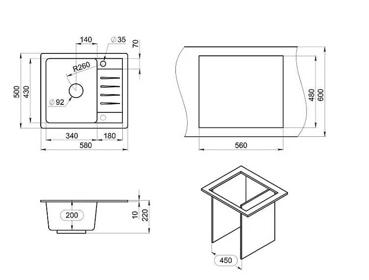Мойка кухонная ЧЕРНЫЙ СтандАРТ кварц 5803 Granula Granula