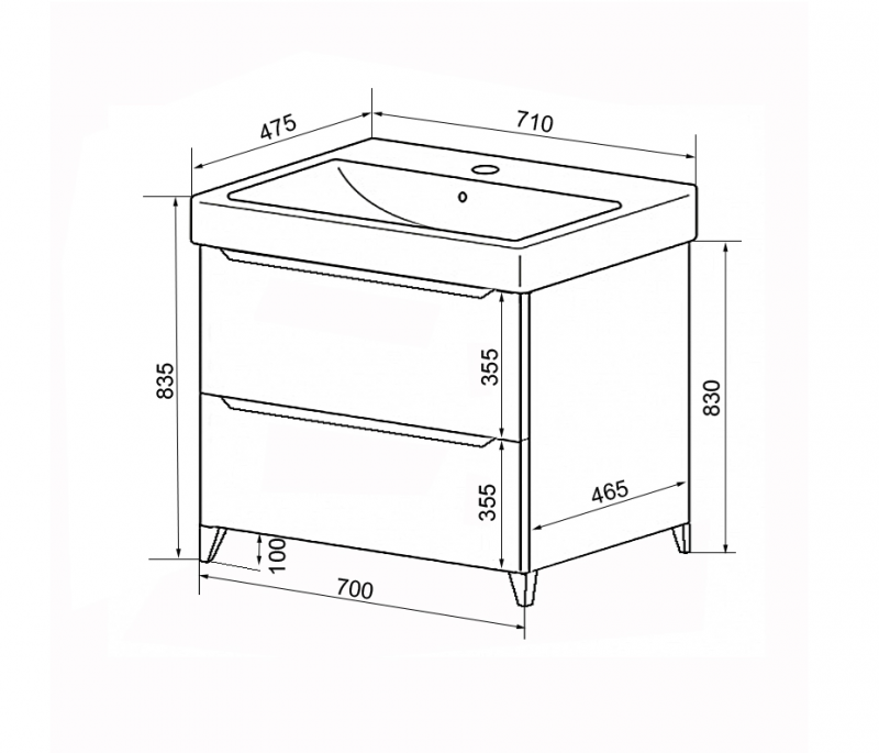 Тумба LOTOS 70/2 H (700х465х830) напольная БЕЗ РАКОВИНЫ OPADIRIS