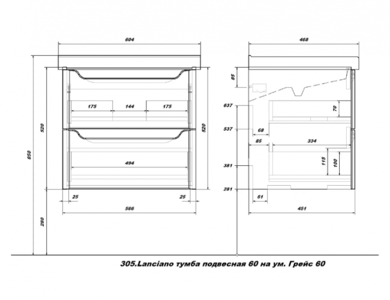Тумба Lanciano 60 подвесная 305.1-1.5.1.