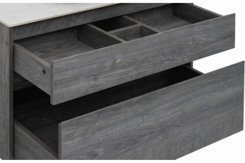 Тумба под раковину Aquanet Nova Lite 90 из влагостойкой ламинированной древесно-стружечной плиты в благородном цвете «дуб рошелье» имеет достойный вид. Фактура натурального дерева выглядит изысканно, а подвесной монтаж придаёт визуальную легкость тумбе шириной 90 см. Она оборудована двумя выдвижными ящиками. Ящики довольно вместительные и позволяют разместить всё необходимое. Фасады выполнены с декоративной интегрированной ручкой, не имеющей острых краёв и внутренних углов, что обеспечивает удобство в эксплуатации и лёгкий уход за мебелью. Ящики комплектуются направляющими немецкого производства Hettich Quadro, оснащёнными доводчиками. Для комплектации тумбы можно выбрать: либо неглубокую стильную встраиваемую керамическую раковину «Латина», либо столешницу, в которой уже предусмотрено отверстие для установки накладной раковины.