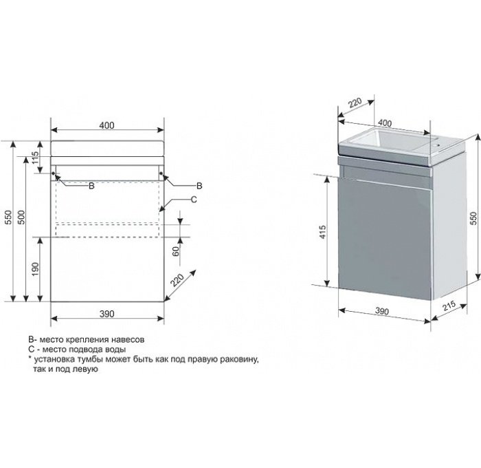 Тумба коллекции Компакт выполнена в современном стиле с преобладанием прямых строгих линий в дизайне.