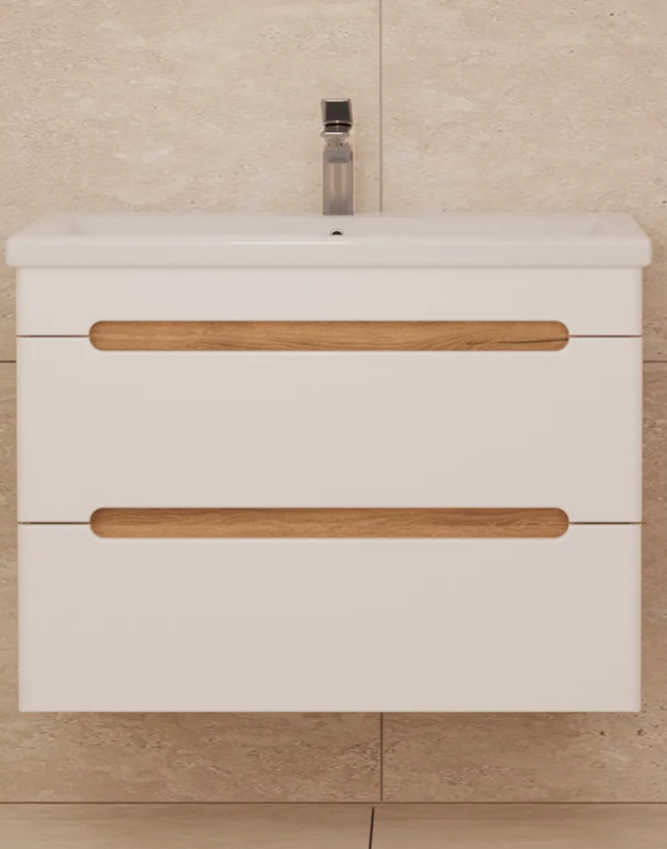 Тумба Diva 70 напольная Белая/Вотан, с умывальником Como 70 Sanstar