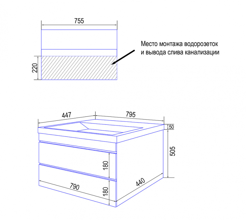 Тумба Эстима 80/2 подвесная с раковиной Астория 80 Azario
