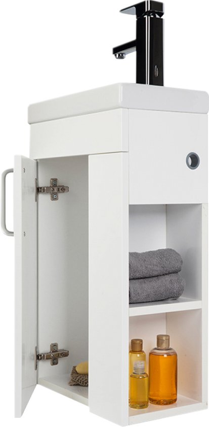 Коллекция Torr специально разработана для маленьких санузлов, где используется смеситель с гигиеническим душем: в боковой части тумбы размещено кольцо для выхода шланга, держатель гигиенической лейки может располагаться на самой боковой панели тумбы или на стене рядом. Мебель Torr – сочетание стиля, практичности и функциональности: минималистичный дизайн тумбы дополнен современным прямоугольным умывальником, вместительными открытыми полками, удобной плоской ручкой. Практичный белый цвет фасадов делает коллекцию универсальной – она подойдет к интерьеру в любом стиле.