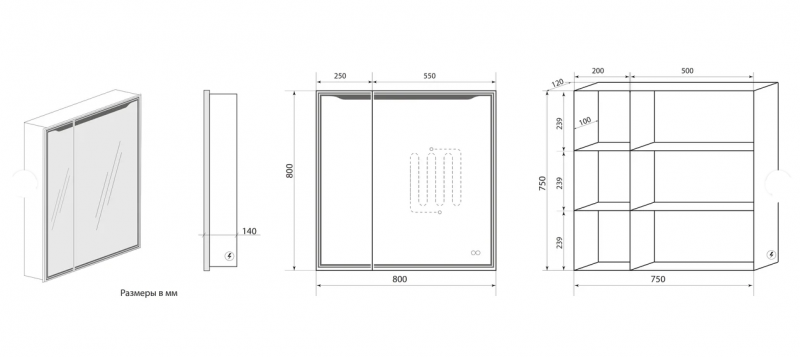 Зеркало-шкаф с подсветкой и подогревом ART&MAX Merano AM-Mer-800-800-2D-R-DS-F ART&MAX