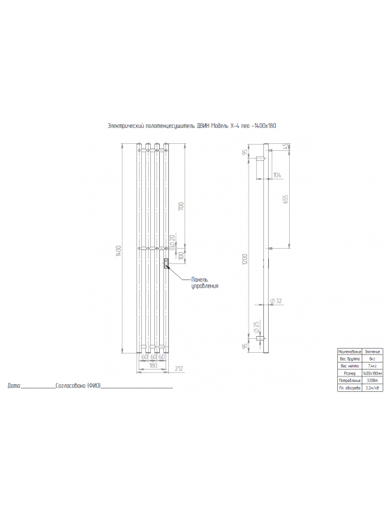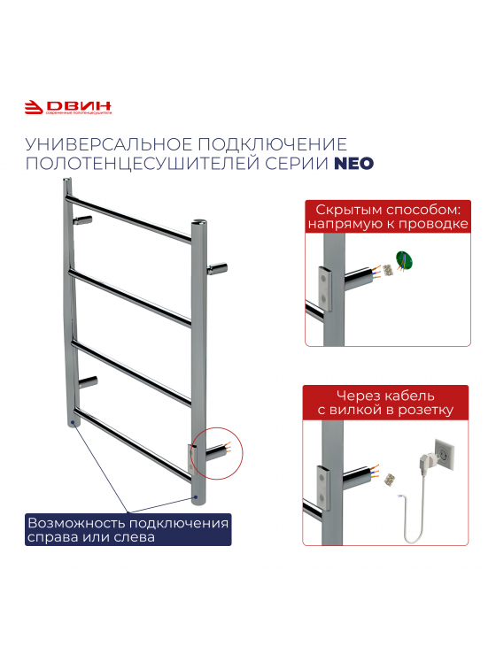 Полотенцесушитель ДВИН X-4 neo 140/18 Электрический (К диммер Полированный) ДВИН