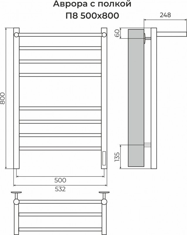 Полотенцесушитель Аврора П8 500х800 с/п Электро КС 9005 (quick touch) TERMINUS TERMINUS