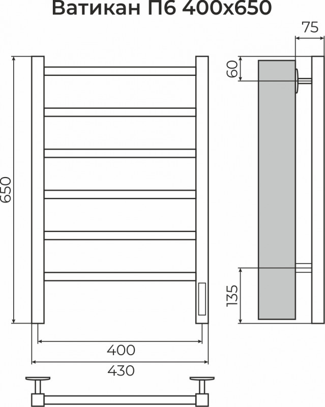 Полотенцесушитель Ватикан П6 400х650 электро (new встроен.диммер) Хром TERMINUS TERMINUS