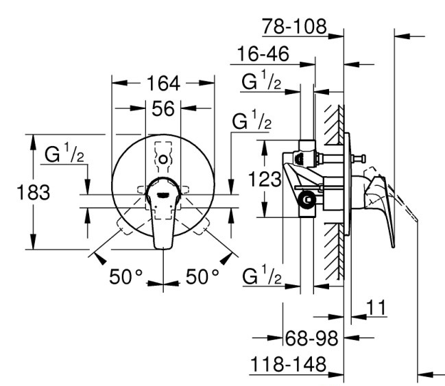 29113000 BauFlow Смеситель для ванны и душа, цвет хром GROHE