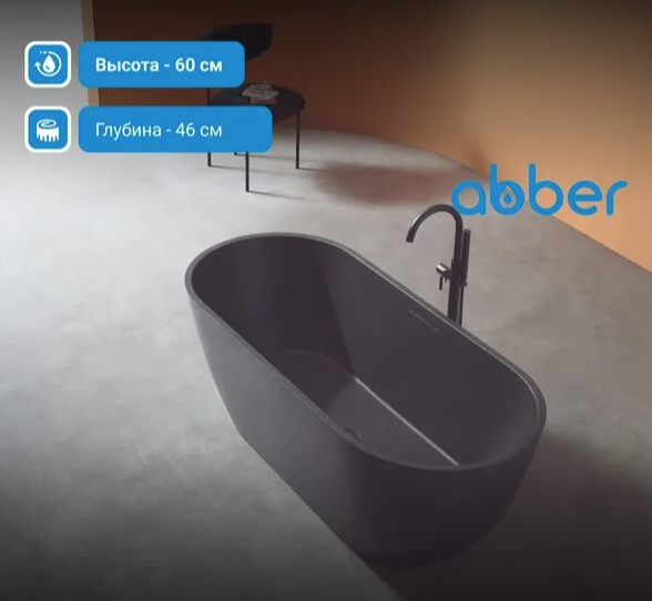 Ванна из искусственного камня ABBER Frankfurt AM9941B черная матовая